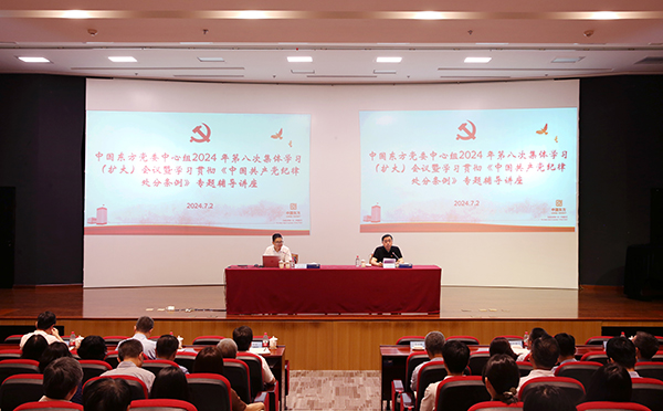 2024年7月2日,为深入推进党纪学习教育,中国东方召开党委理论学习中心组2024年第八次集体学习(扩大)会议,邀请中国纪检监察学院副研究员阳平围绕学习贯彻《中国共产党纪律处分条例》,为公司系统党员干部作专题辅导讲座。中国东方党委书记、董事长王占峰主持会议并讲话,公司党委委员、总裁助理、首席信息官出席会议。