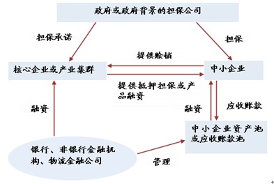 而国内情况,中小企业供应链融资的前期突破口是“渠道成员”,为了给以众多中小企业为代表的“渠道成员”融资,银行与核心企业和渠道成员之间签订三方协议,核心企业仍只是市场营销的中介手段,未能充分发挥核心企业在降低供应链信用风险方面的作用,渠道成员是其目标客户群,且国内供应链融资更多属于资产支持性贷款的范畴,改进之处在于引入核心企业和物流监管方作为风险控制因素,同时也涉及核心企业与银行间的系统性安排。