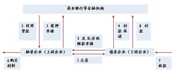 现实中,中小企业的流动资产在资产负债表中占了很大比重,利用流动资产提供的信用支持为供应链中中小企业成员解决融资需求,是供应链融资的基本出发点。供应链中每笔交易都有对应的物流与资金流,银行可将其作为资产支持手段,如货物质押、应收账款受让等,由此中小企业应收账款融资作为供应链融资的一种模式便应运而生。