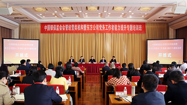 2020年11月2日至5日,中国银保监会会管经营类机构暨东方公司党务工作者能力提升专题培训班在北京成功举办。中国银保监会会管经营类机构30名党务工作者代表、中国东方系统100名党务工作者参训。银保监会会管经营类机构管理委员会副主任贾沛文出席开班仪式并讲话。中国东方党委书记、董事长吴跃作开班动员,党委副书记、监事长高玉泽,党委委员、纪委书记仇宝林先后作专题授课。中国东方党委组织部部长、人力资源部总经理杨东主持开班仪式并指导培训过程。