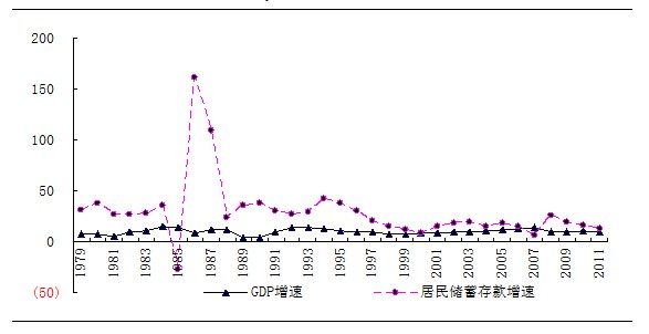 图1 中国居民储蓄存款和GDP增速(单位:%)